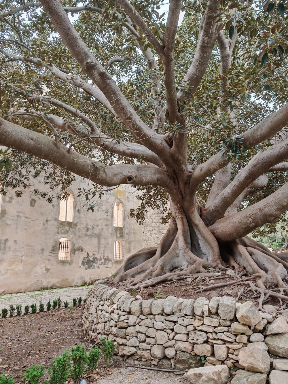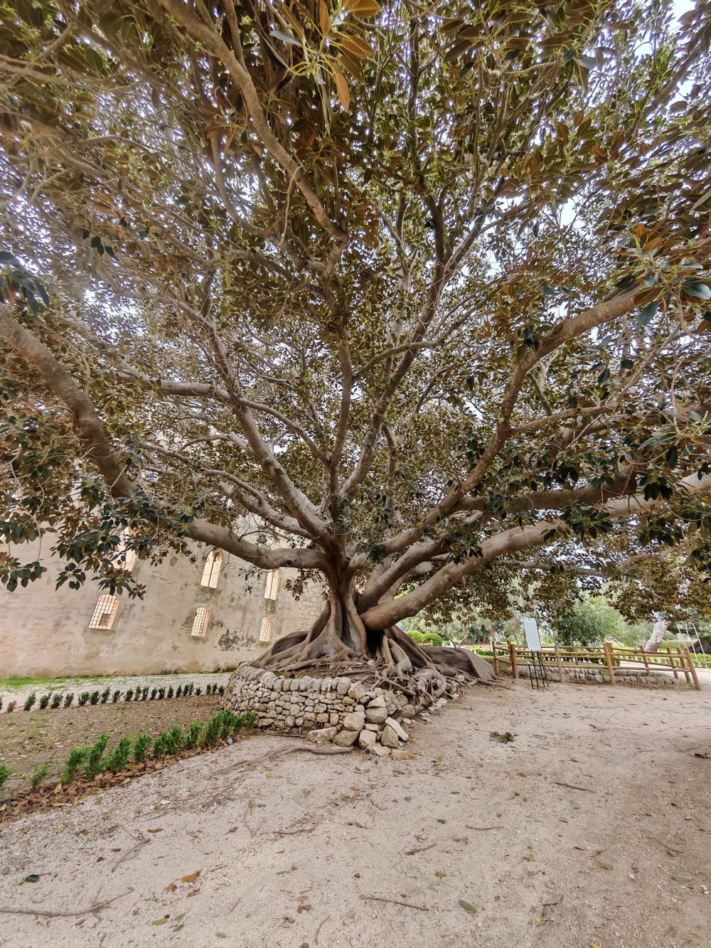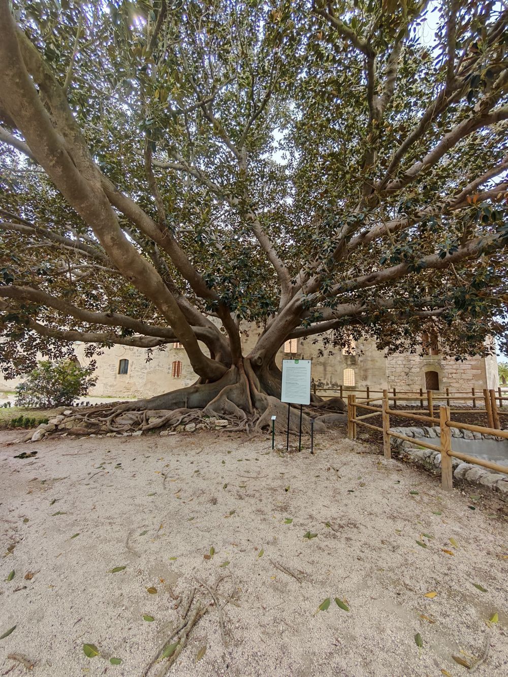 I ficus presenti all'interno del Castello di Donnafugata non sono soltanto un elemento botanico, ma incarnano simbolicamente molte delle tradizioni, leggende e storie che fanno parte della cultura siciliana. La loro maestosità e longevità fanno sì che siano testimoni silenziosi della storia del castello e dei suoi abitanti, unendo natura e mito in un abbraccio che affascina ancora oggi i visitatori. I ficus, grazie alle loro dimensioni enormi e alle radici aeree, evocano l'idea di rifugio, protezione e permanenza. Un aneddoto racconta che durante una tempesta ha addirittura protetto il castello dall'essere danneggiato. I ficus del castello di Donnafugata hanno anche un tratto scaramantico e romantico, in quanto oltre a essere il posto dove gli innamorati si scambiavano le promesse d'amore, essi spesso portavano alla base dell'albero delle monete d'oro per chiedere la benedizione del loro amore. Si credeva che l'albero, con la sua grandezza e longevità, fosse capace di infondere fortuna e protezione nelle relazioni.
